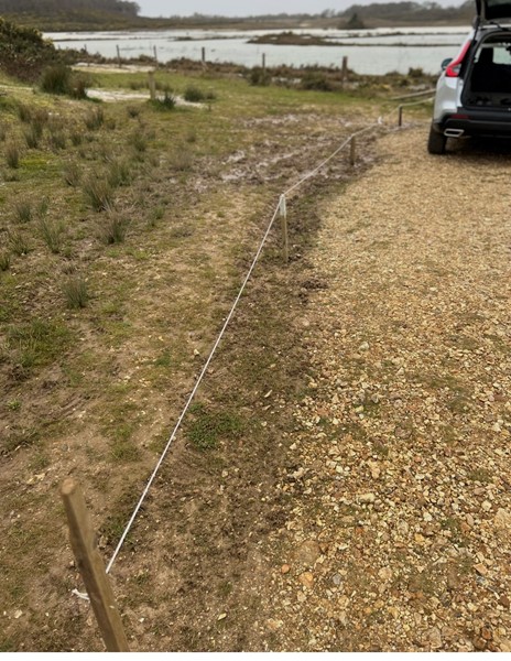 We recently put a temporary fence (image 1) outside the lower gate at Silverlake to prevent cars turning on the verge (not allowed!), read the rules!