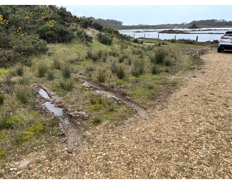 We recently put a temporary fence (image 1) outside the lower gate at Silverlake to prevent cars turning on the verge (not allowed!), read the rules!